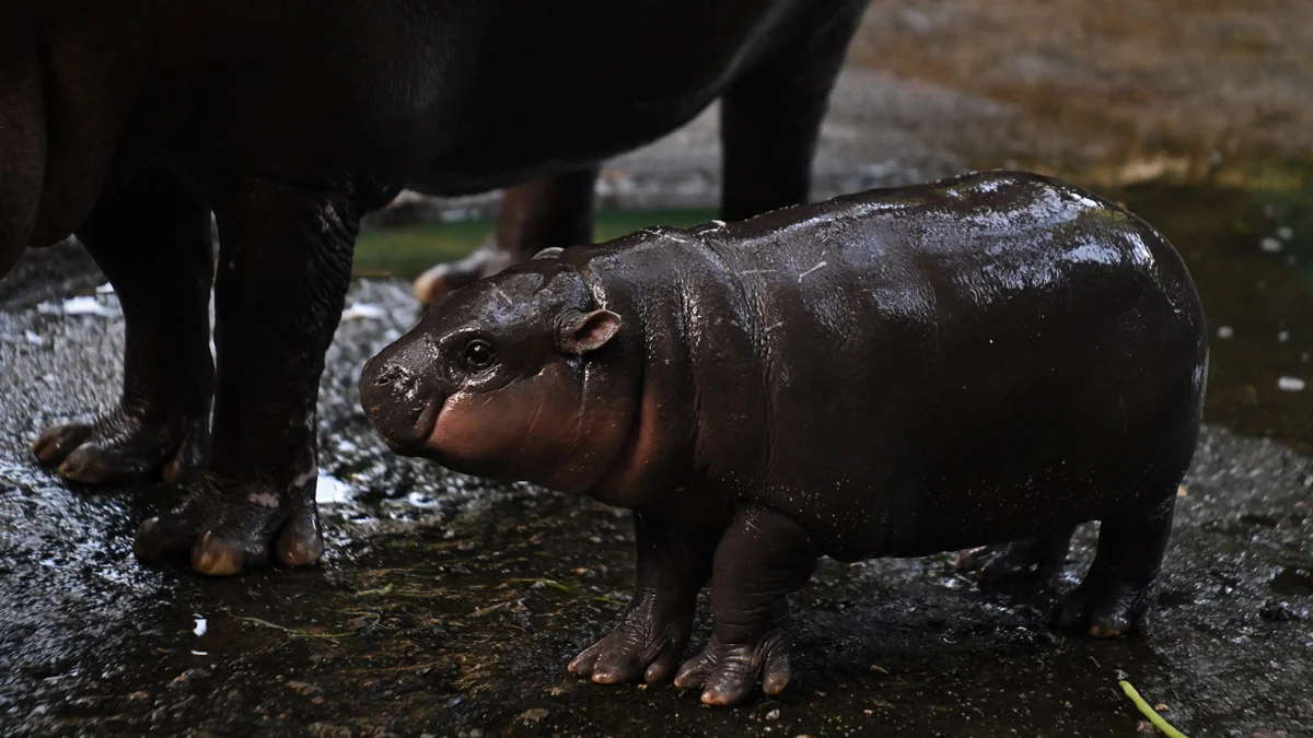 A pygmy hippo in Thailand has become an internet star. She was born on 10 July this year at the Khao Kheow Open Zoo. The zoo shared an image of the newborn on social media, which promptly went viral. After a public poll, she was given the name Moo Deng, which literally translates to "bouncy pig". Visitor numbers have more than doubled at the zoo and several companies have used her in adverts.